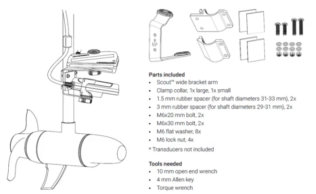 Dual Scout Mode for double the live sonar coverage around the boat with this mount.