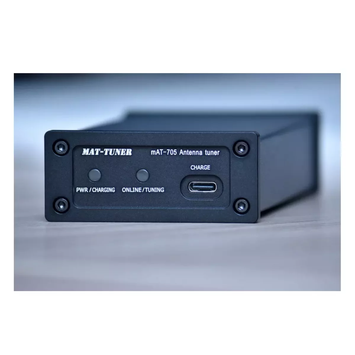 MAT-705Plus has a small physical footprint. Measures 1 1/8″ H x 2 5/8″ W x 6″ D (29 x 67 x 151mm). Weight 10 ounces. No need to carry around a 2 pound autotuner and a stack of AA batteries for portable operation as used by other autotuner brands for your IC-705.