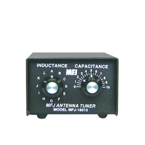 The MFJ-16010 is a variable L-network random wire antenna tuner designed to match the low output impedance of your transmitter to the high impedance of a random wire (or vice versa). It will match almost any random length of wire to any transmitter from 160 thru 10 meters. The transmitter may have an output RF power up to 200 watts. For best results, the random wire should be as long, high, and clear of surrounding
