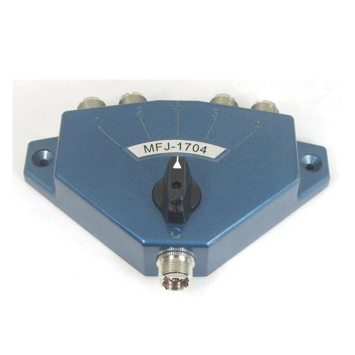 Mount this MFJ-1704 four position SO-239 switch and youll have more than convenience of instantly selecting any of 4 antennas or center ground position — you get a replaceable lightning surge protection that helps protect against distant lightning induced surges and static.