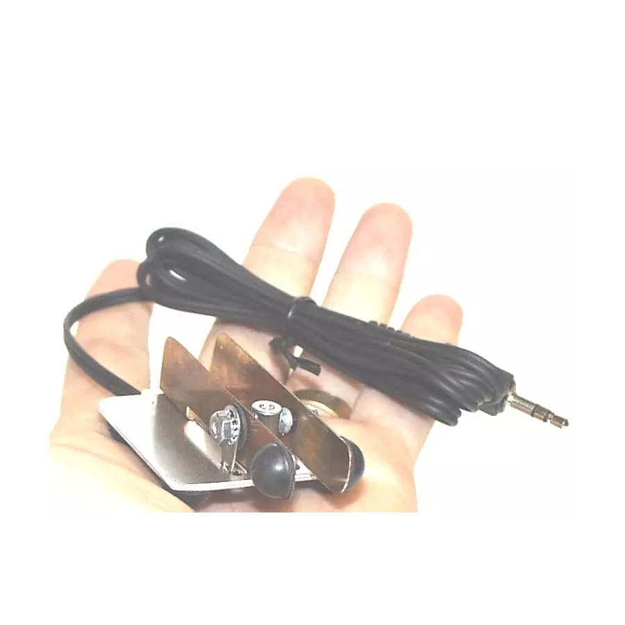 Mounted on rugged metal base with non-skid rubber feet. Complete with four foot cord and 3.5 mm plug — ready to plug into your keyer or rig!