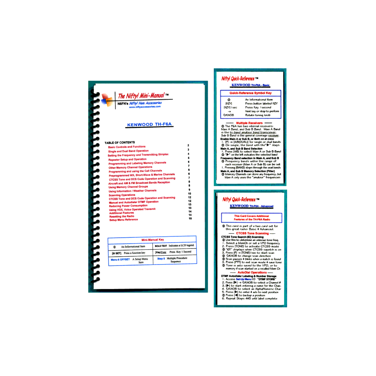 Mini-Manual and Tri-Folded Reference Card Combination for the TH-F6A / F7E. The Combo includes a full featured 16 page spiral-bound Mini-manual, plus a two tri-folded reference card set for your wallet. The guide covers both models of the radio.
