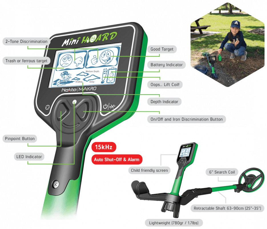 For the young treasure hunters of the future this Nokta kids metal detector features: