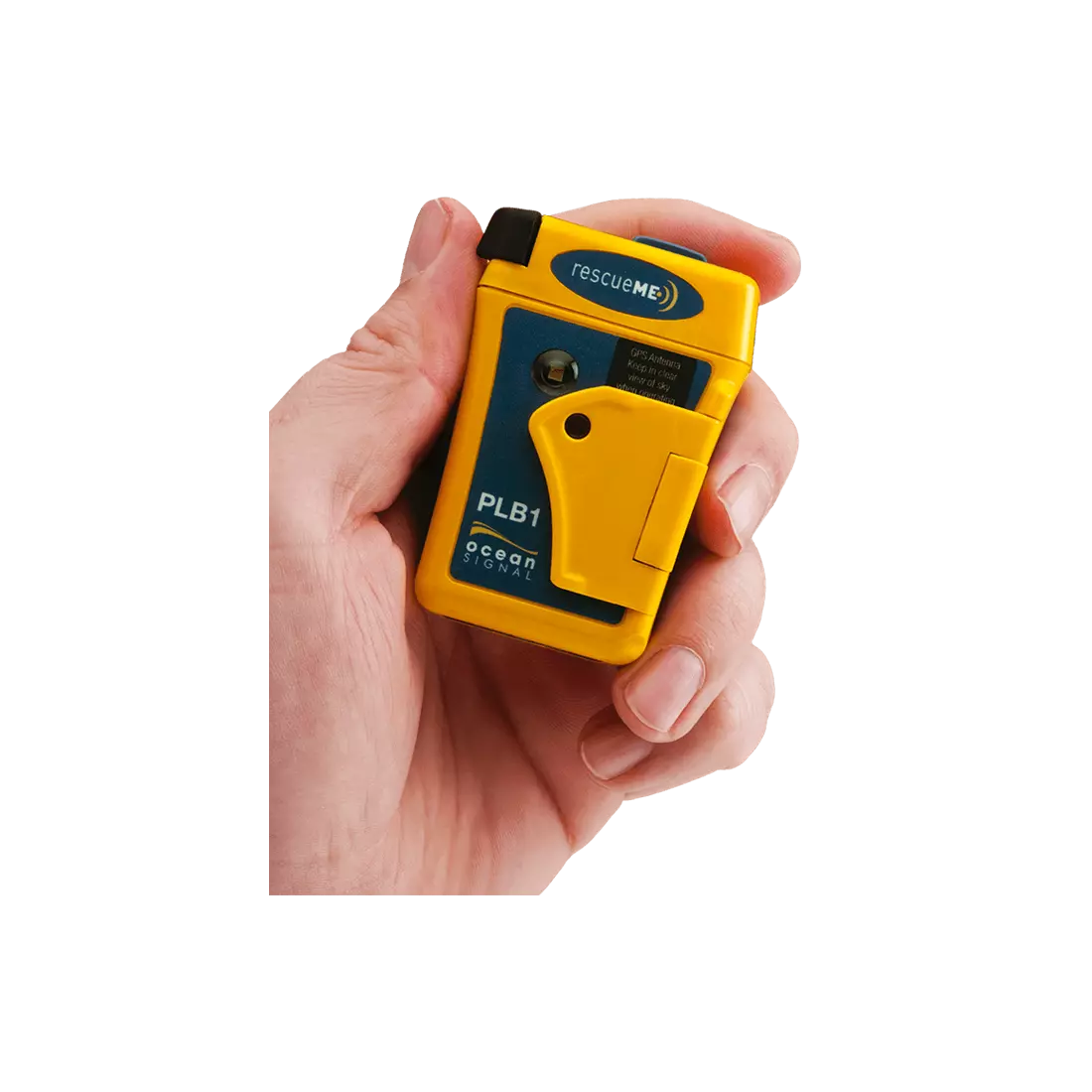 The rescueMe PLB1 emergency beacon can be operated with a single hand in even the most challenging situations. A simple spring loaded flap covers the activation button preventing inadvertent use.