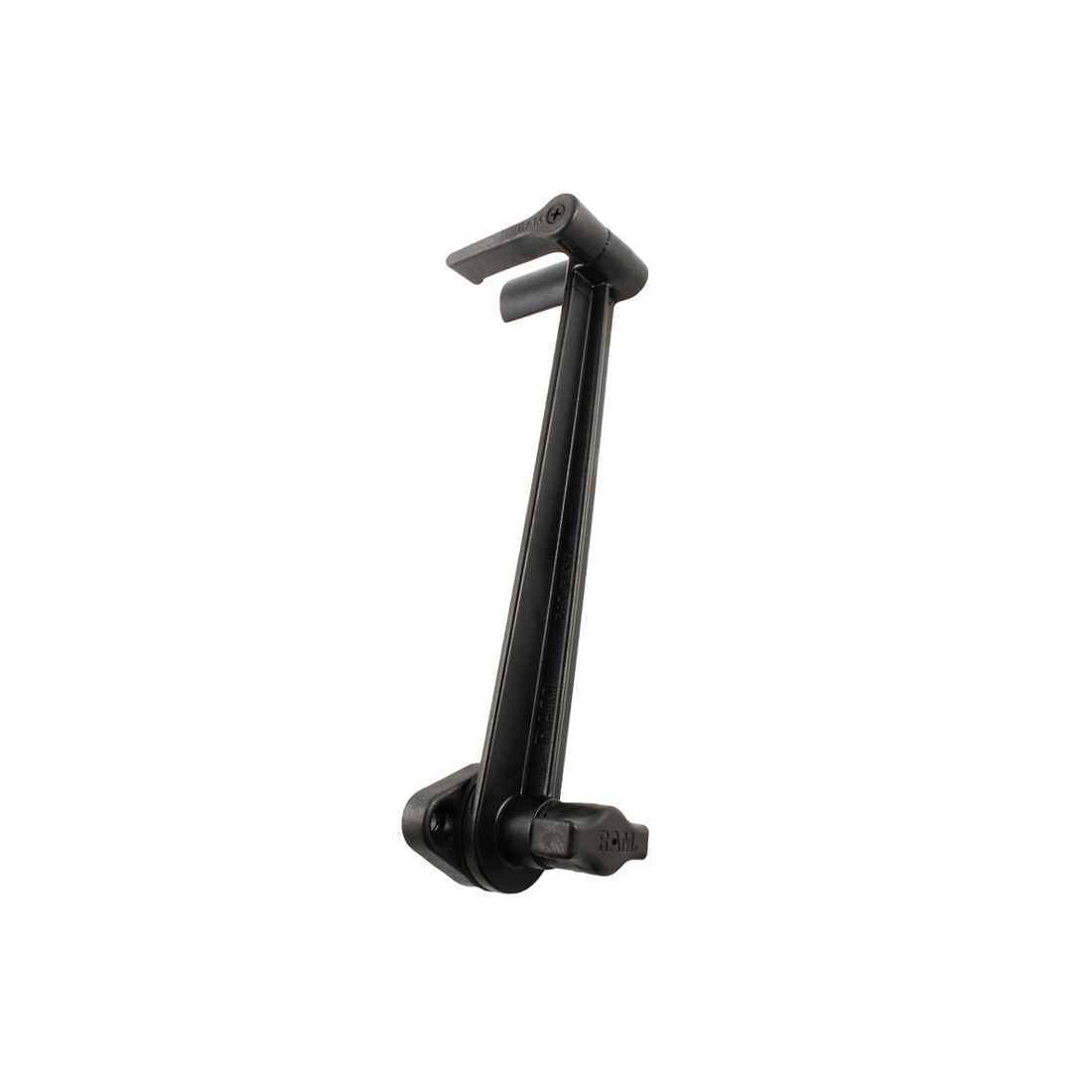 The RAM-234-S2U is a screen support arm with spring loaded keeper; this allows it to travel smoothly with the screen through numerous viewing angles. The screen support arm stores easily when not in use.