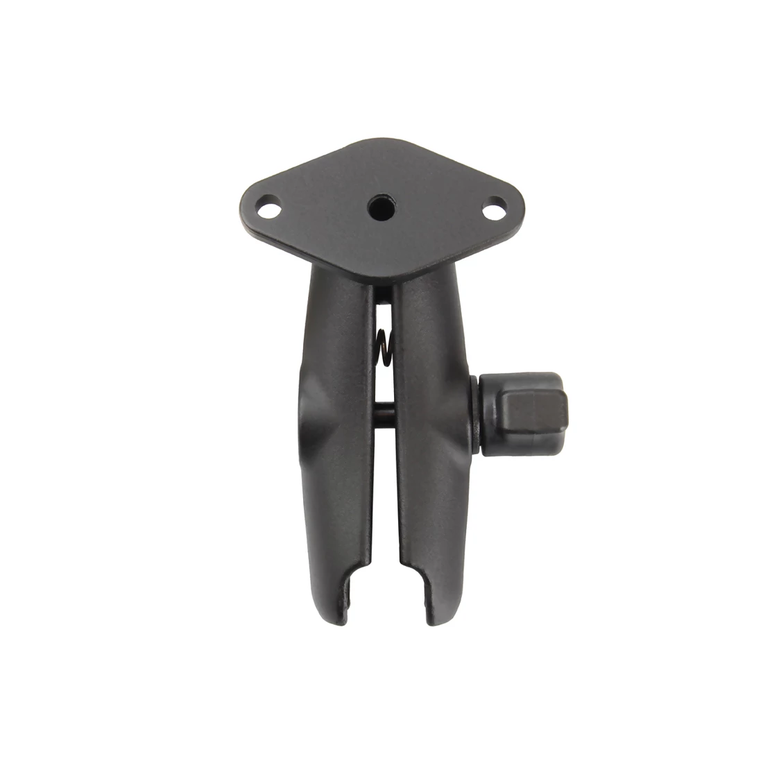 The RAM-103-238U consists of a diamond base and standard length double socket arm that will accept 1″ ball bases. The diamond base measures 2.43″ x 1.31″ and contain two holes 1.912″ from center to center, positioned at both ends of the diamond base. The hole pattern found on the diamond base will connect to many RAM cradles, as well as third party cradles including mounts with the industry standard AMPS hole pattern. Designed into the mount is a 1″ diameter patented rubber ball and socket system with adjustment points at both ends of the socket arm; this with a twist of the arm knob allows for you to maneuver the mount to your optimum viewing position.