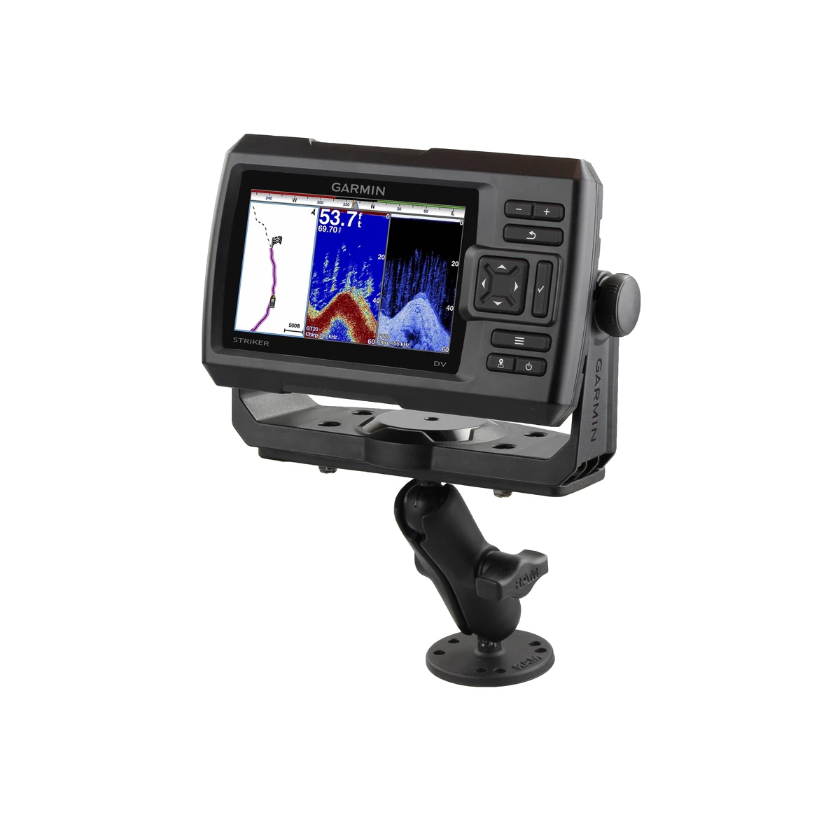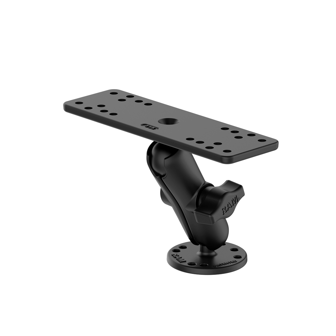 The RAM-B-111U consists of a double socket arm, 2.5″ diameter round base and 6.25″ x 2″ rectangle base. The round base contains pre-drilled holes, including the universal AMPS hole pattern. The rectangle base contains different combinations of pre-drilled holes which will match up to many electronic devices and mounts, including Marine GPS, CB Radios, Ham Radios, Gimbal Brackets and more.