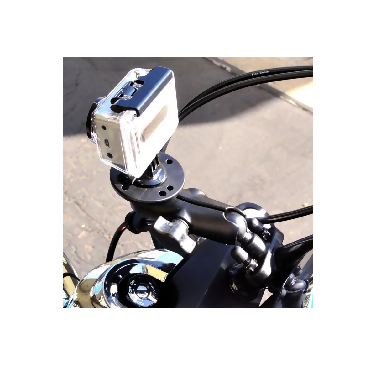 RAM Handlebar Rail Mount with Zinc Coated U-Bolt Base & Round Base Adapter that Contains a 1/4-20 Thread for Cameras