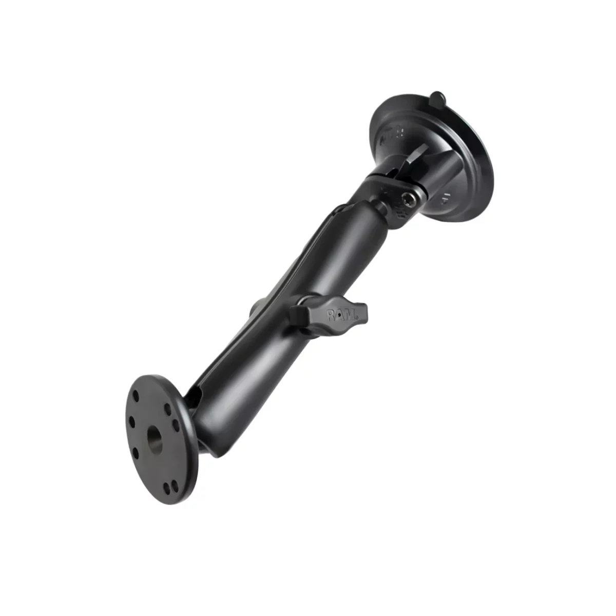 RAM Twist-Lock™ Suction Cup Mount with Long Double Socket Arm and 2.5″ Round Base that contain the AMPs hole pattern