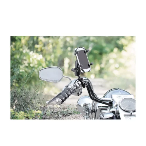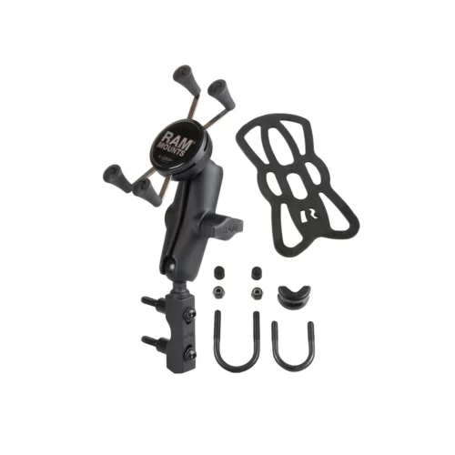 The RAM-B-174-UN7U consists of hardware for mounting to either brake/clutch reservoirs and rails that are 0.5″ to 1.25″ in diameter, double socket arm and universal X-Grip® cell phone cradle. Designed into the mount is a 1″ diameter patented rubber ball and socket system with adjustment points at both ends of the socket arm; this with a twist of the arm knob, allows you to move the X-Grip® mount to your optimum viewing position. The mounting hardware for brake/clutch reservoirs include both standard and metric mounting bolts. The included X-Grip® cradle has a clean and clever four leg design that sports great holding power without hiding your phone behind foam pads and plastic. The spring loaded X-Grip® cradle expands and contracts, allowing for a perfect custom fit of your cell phone. The perfect complement to the modern sleek interior of today’s vehicles, the RAM X-Grip® is the cell phone cradle evolved.