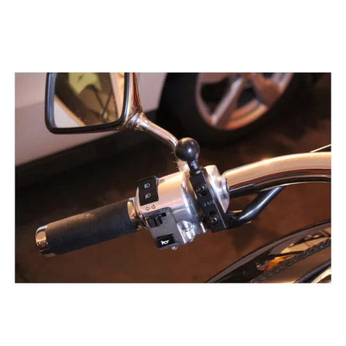 The RAM-B-174U consists of a 1″ diameter rubber ball, double socket arm, hardware for mounting to both brake/clutch reservoirs and rails that are 0.5″ to 1.25″ in diameter. The mounting hardware for brake/clutch reservoirs include both standard and metric mounting bolts. Designed into the mount is a 1″ diameter patented rubber ball and socket system with adjustment points at both ends of the socket arm; this with a twist of the arm knob allows you to move the mount to your optimum viewing position.