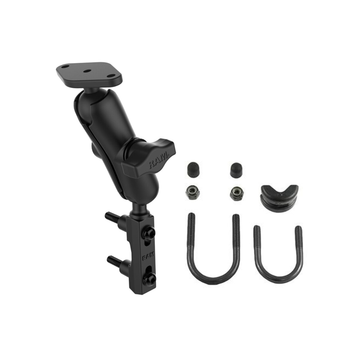 The RAM-B-174U consists of a 1″ diameter rubber ball, double socket arm, hardware for mounting to both brake/clutch reservoirs and rails that are 0.5″ to 1.25″ in diameter. The mounting hardware for brake/clutch reservoirs include both standard and metric mounting bolts. Designed into the mount is a 1″ diameter patented rubber ball and socket system with adjustment points at both ends of the socket arm; this with a twist of the arm knob allows you to move the mount to your optimum viewing position.
