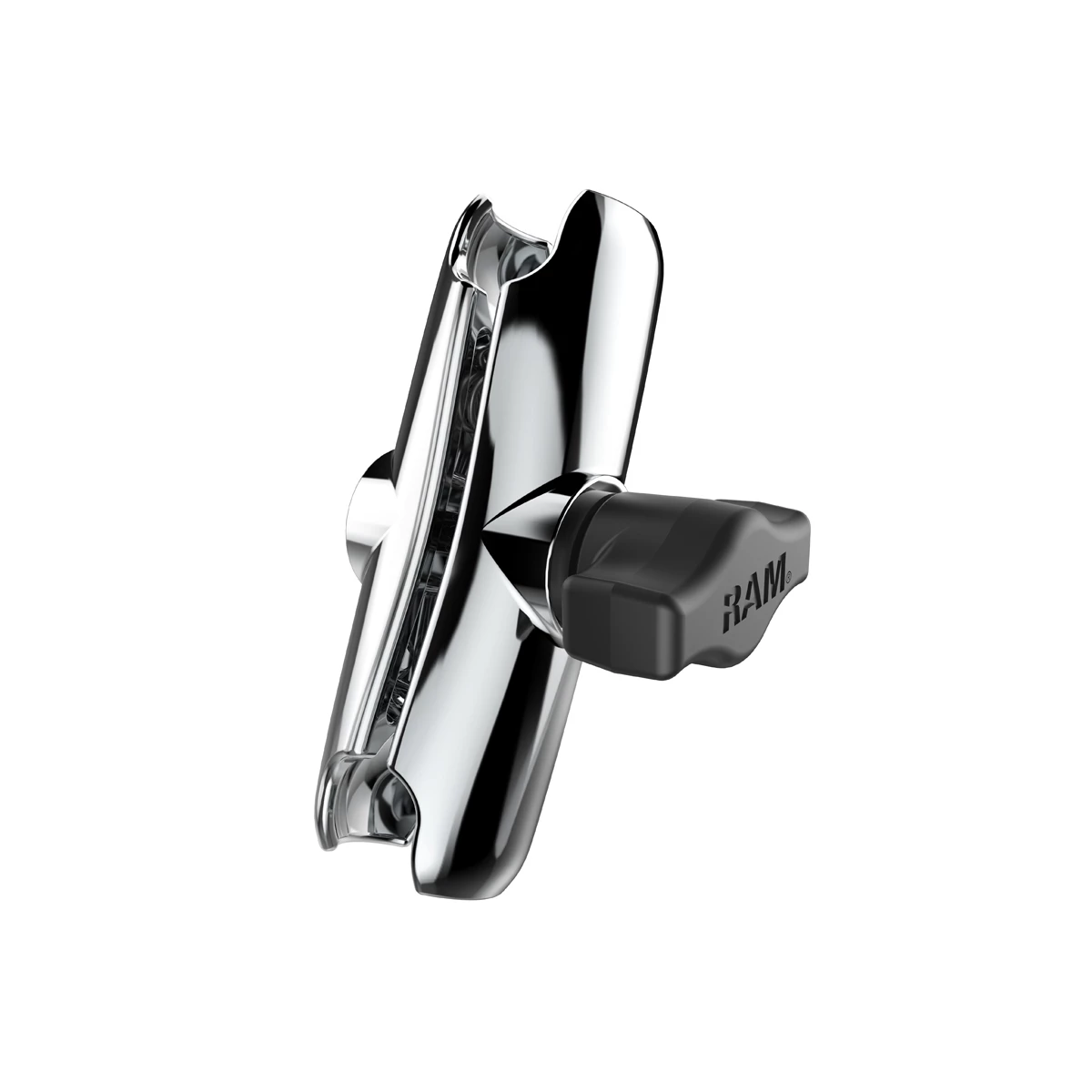 The RAM-B-201CHU, chrome double socket arm, has a socket at both ends that accommodates 1″ ball bases. A single spring inside the arm opens the end sockets, allowing you to pivot the ball and socket connection. This socket technology allows for almost infinite adjustment and perfect viewing angles.