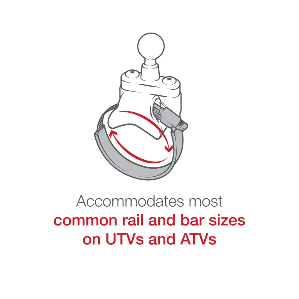 RAM Rail Base with Stainless Steel U-Bolt, ATV/UTV Strap & 1″ Ball for Rails to 3.15″ in Diameter
