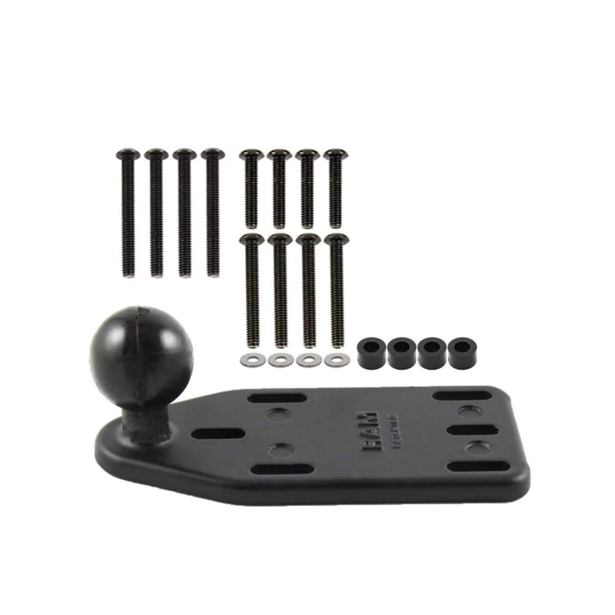 The RAM-B-346U base fits cleanly over your existing brake/clutch reservoir cover with the 1″ ball offset. Made of die cast aluminum with an over molded rubber ball, both form and function are unsurpassed. Installation is simple and all necessary hardware is included. The mount is NOT an additional reservoir cover, but instead a plate shaped similarly to the cover that mounts above the cover using the covers screw holes and longer screws. The kit actually comes with 3 sets of screws of differing lengths.