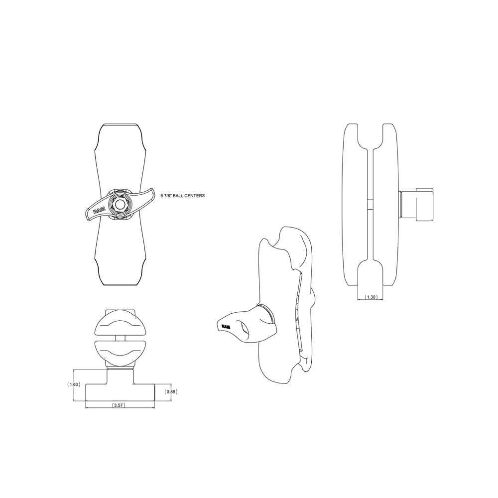 The RAM-D-201U, standard size double socket arm, has a socket at both ends that accommodates 2.25″ ball bases. A single spring inside the arm opens the end sockets, allowing you to pivot the ball and socket connection. This socket technology allows for almost infinite adjustment and perfect viewing angles.