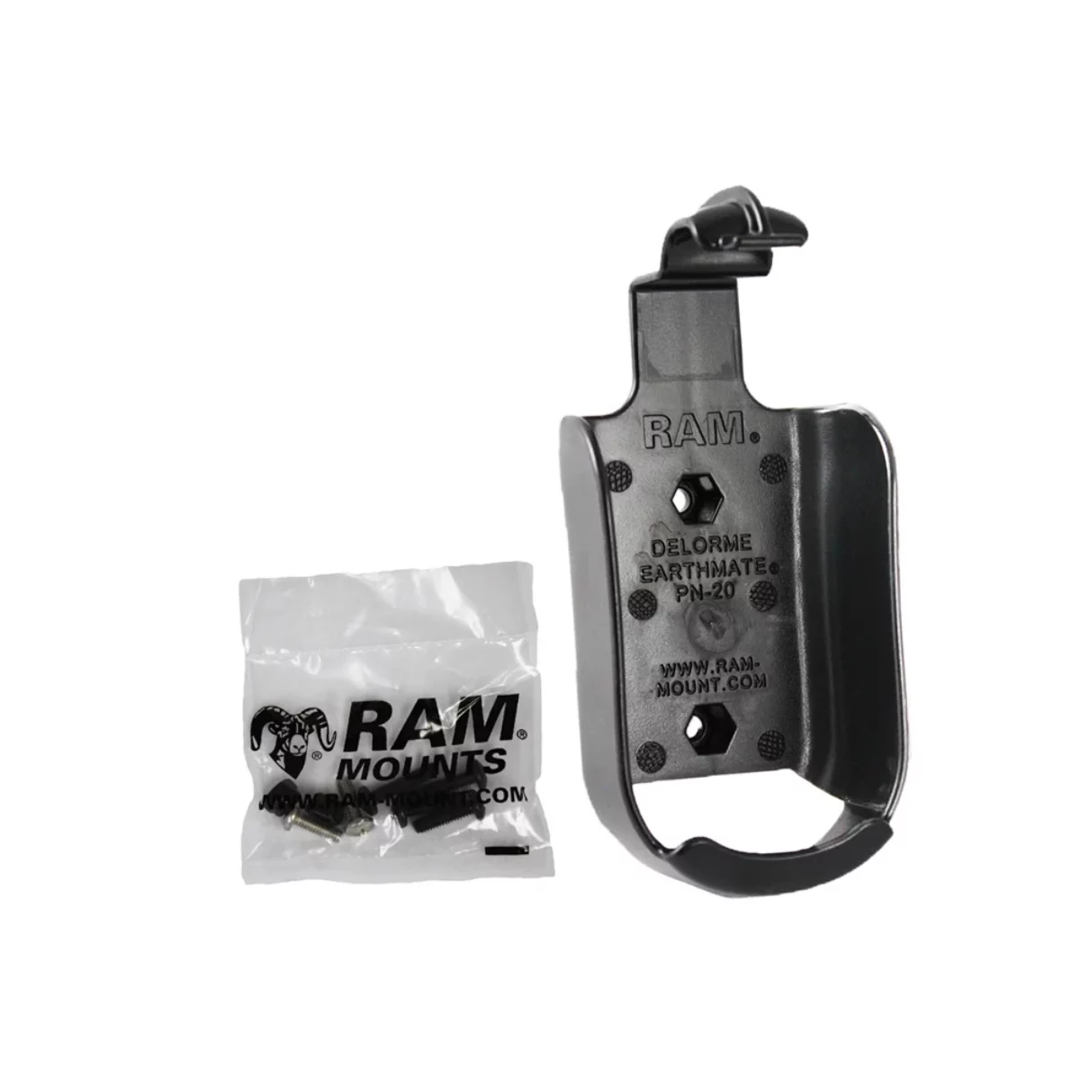 All cables can stay connected to the unit while in the RAM cradle. The cradle includes a set of two nuts and bolts to connect the cradle to any of the RAM compatible mounts. Check out our recommended subassemblies below for all your mounting needs!