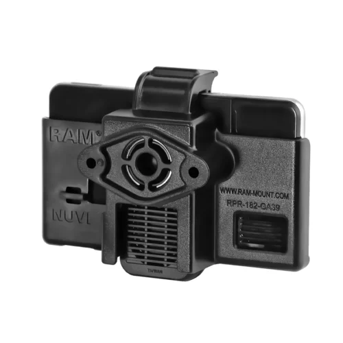 All cables can stay connected to the unit while in the RAM cradle. The cradle includes a set of two nuts and bolts to connect the cradle to any of the RAM compatible mounts.