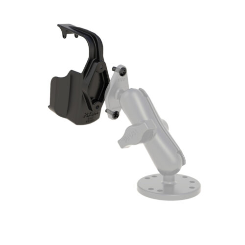 All cables can stay connected to the unit while in the RAM cradle. The cradle includes a set of two nuts and bolts to connect the cradle to any of the RAM compatible mounts. Check out our recommended subassemblies below for all your mounting needs!