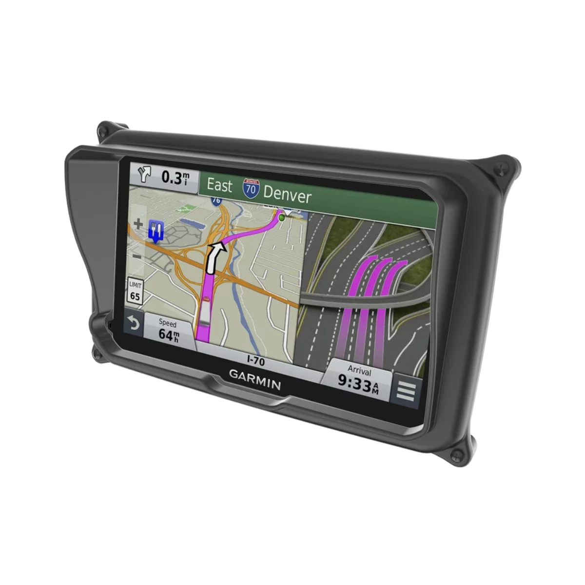 The RAM-HOL-GA70LU is a high-strength composite locking case for the Garmin dezl 770. RAM has designed a form-fit cradle that supports the device and protects it from vibration. We have also molded in a sun visor to shield the screen and the diamond hole pattern allows the attachment to all RAM components or mounts that contain the universal AMPs hole pattern. Compatible and interchangeable with a wide range of popular RAM mounting products, this locking case is ready to compliment your GPS and become the most useful accessory in your vehicle.