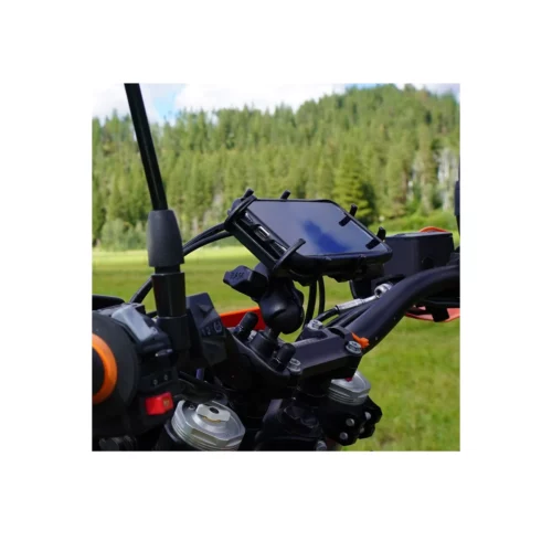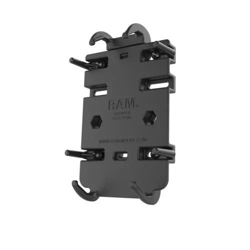 RAM universal spring loading clamping cradle for smartphones and cell phones. The cradle includes a top clamp and side retaining arms that adjust accordingly to the width and height of your device, securing your device in the cradle. Primary mounting applications for the clamping cradle is in LOW VIBRATION environments including cars, trucks and fleet vehicles.