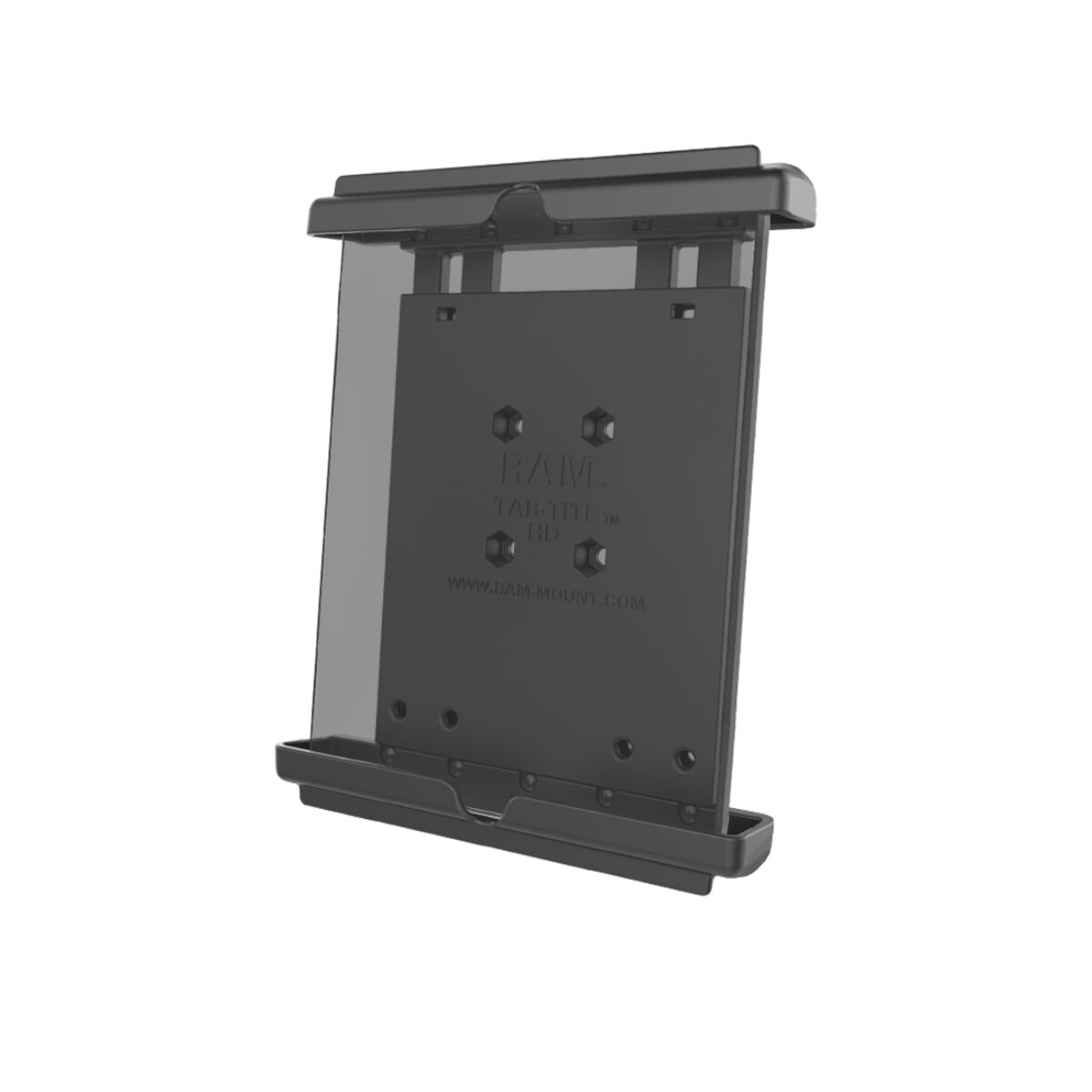 The RAM-HOL-TAB12U consists of a spring loaded back plate and custom support cups for the iPad mini WITH skin, sleeve or case. The spring loaded design makes it easy to load and unload your tablet, along with keeping it secure while on the go. Interchangeable cup ends are designed to optimize the functionality of your tablet, allowing access to audio jacks, usb, power, and other ports, your tablet can be used just as it was intended. Perfect for stationary or on the go applications, the RAM-HOL-TAB12U is just what you need to get the most out of your tablet. Included is a set of four nuts and bolts to connect the cradle to any RAM components or mounts that contain the universal AMPs hole pattern.