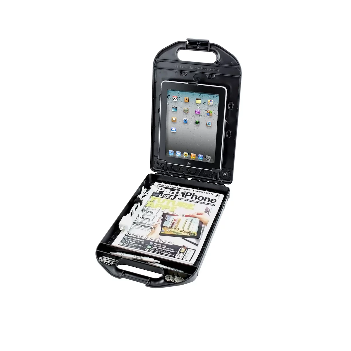 Sure, there are other cases for your iPad on the market but none of them provide the unparalleled versatility of the RAM Handi-Case™. If you want a truly portable work station specifically designed to accommodate your office essentials, you’ve found it. With a custom iPad cradle securely fastened inside the case, not only is the iPad protected from harm, you now have storage options for documents, writing instruments, and other common items. Constructed of high strength composite material, this cradle/case combination is perfect for anyone, from students to field techs who simply want their iPad safe and their daily life organized.