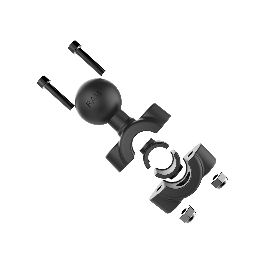 The RAM® Torque™ bar mount has a 1” rubber ball and accommodates rails 3/8” to 5/8” in diameter. Sizing inserts are included to provide a snug fit and protection of the rail. The mount utilizes nylon-insert locknuts to prevent loosening in high vibration environments.
