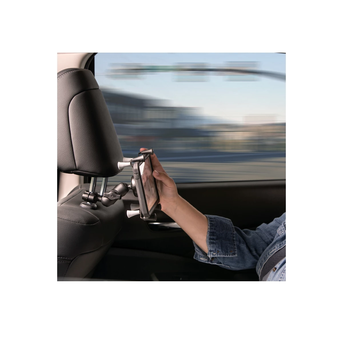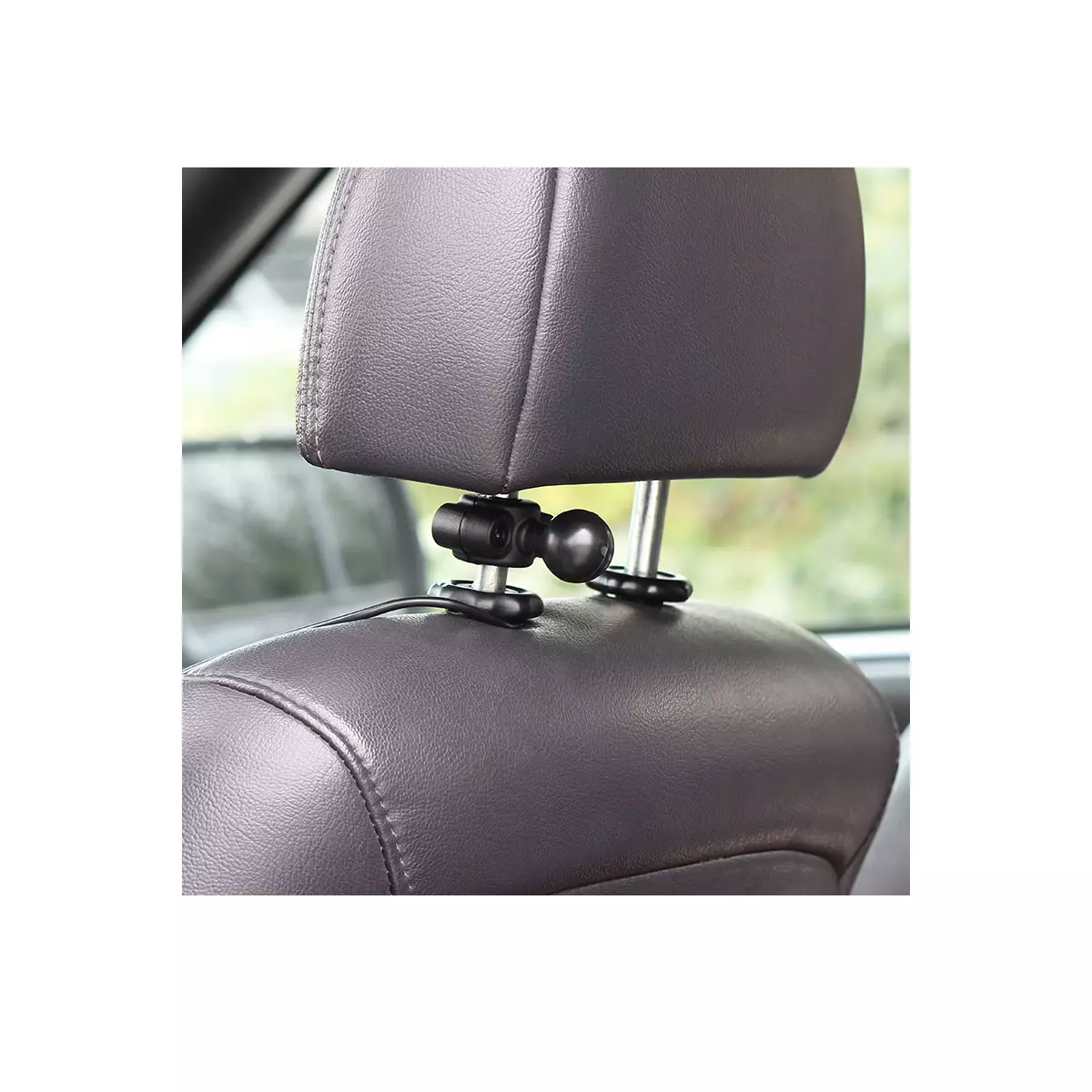 The RAM-B-408-37-62U allows for mounting to scooter mirror rails as well as vehicle headrests and other round rails within the stated dimensions.