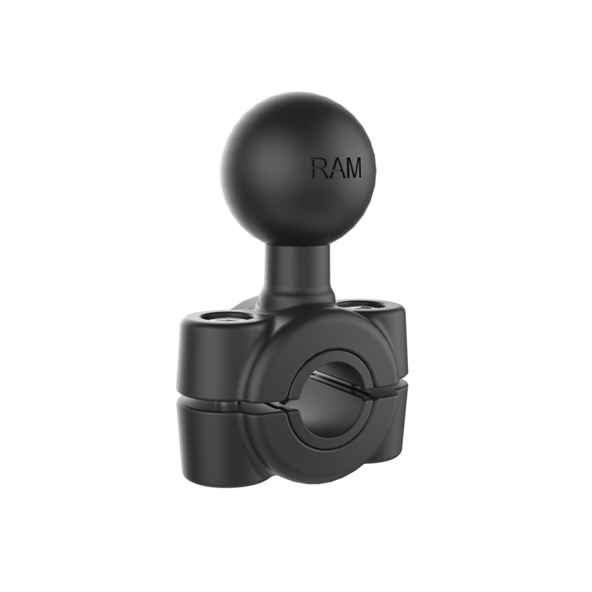 The RAM® Torque™ bar mount has a 1” rubber ball and accommodates rails 3/8” to 5/8” in diameter. Sizing inserts are included to provide a snug fit and protection of the rail. The mount utilizes nylon-insert locknuts to prevent loosening in high vibration environments.