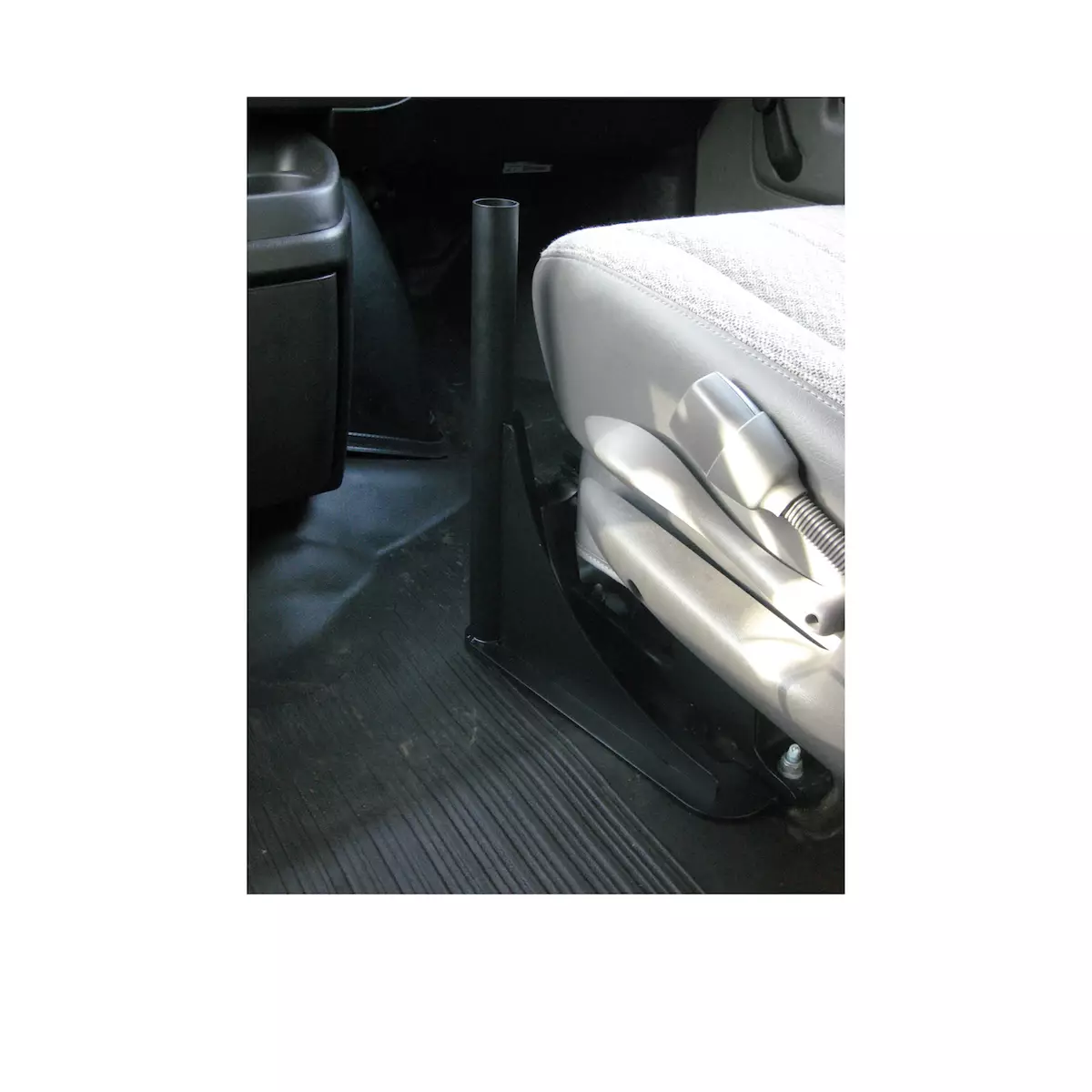 This No-Drill™ Laptop Stand System installs quickly and easily into the specified vehicles using the existing hardware of the passenger side seat rails. This configuration provides a telescoping feature that ranges from 12 to 18 inches. Dual swing arms provide articulation and 12 inches of reach for passenger and driver access to the mounted device. Patented rubber ball and socket joint provides additional adjustment as well as shock and vibration isolation. The RAM Tough-Tray™ is spring loaded to accommodate 10″ to 16″ wide laptops & (17″ wide screens). The tray features four adjustable retaining arms with rubber grip feature. These arms can be moved both vertically and horizontally. This allows for a custom fit for varying thicknesses of laptops and the freedom of not blocking ports or drives. A screen support and USB light are also available to accessorize the tray. Hole patterns on perimeter of tray facilitate the mounting of additional RAM systems to support GPS or other electronics.