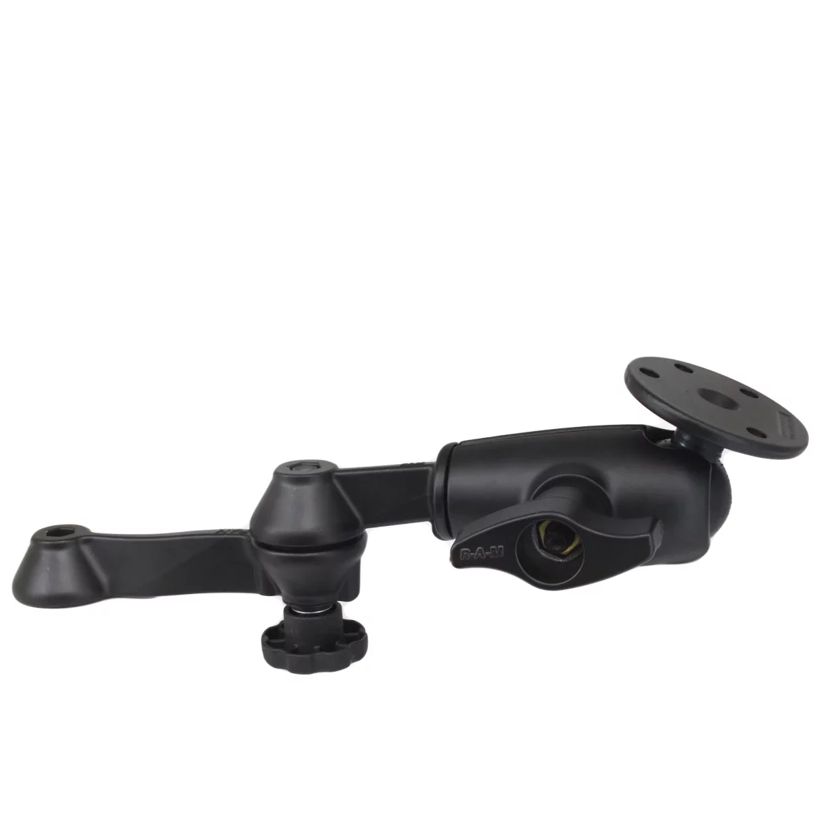 2.25″ (D Size) Double Swing Arm with Swivel Socket Mount and 3.68″ Diameter Base/2.25″ Ball (AMPS). The RAM Mount RAM-VB-D-110-1U Double Swing Arm with Rotating Plate, allows you to twist and tilt the viewing angle of your laptop, tablet, UMPC, monitor, or any other connected electronic device, when mounted on your RAM Vehicle Mount. Taking the highly successful RAM Vehicle Mounts to the next level, this rotating swivel arm gives you even more viewing positions for your mounted electronic device while holding everything firmly in place.