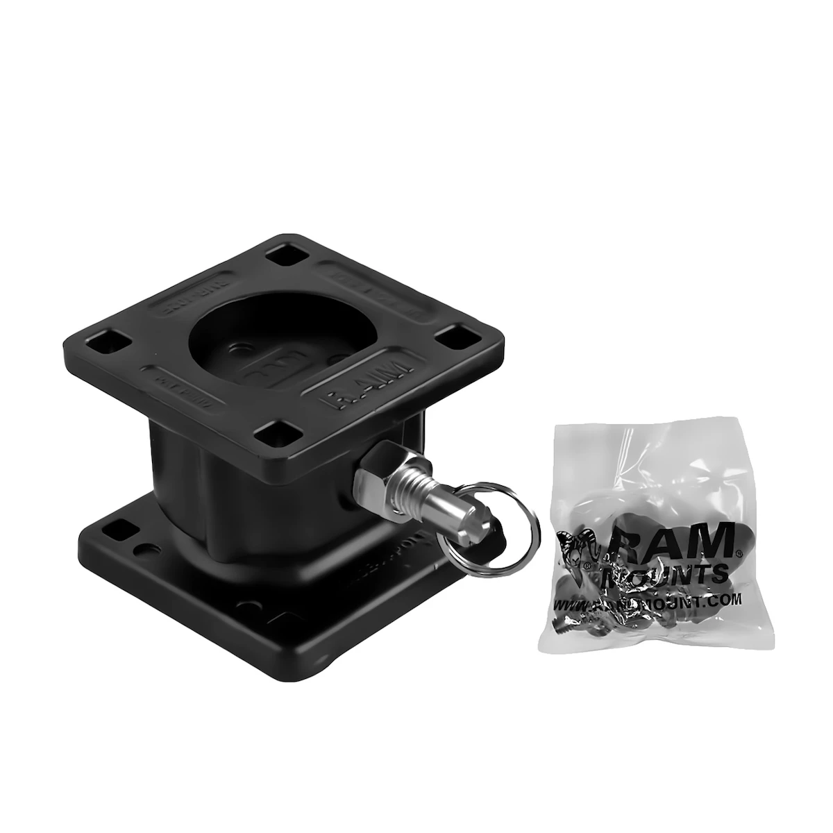 The Remove-A-Pole™ allows any vehicle laptop Tele-Pole™ system to be easily removed quickly and easily. Simple to use, pull the spring loaded locking safety pin and the entire Tele-Pole™ with laptop system is easily removed from the vehicle base. All that’s left is a small discrete vehicle base with quick release male spud. Retro-fit it to any new or existing system within minutes and enjoy the pleasure of completely removing your RAM laptop mount, leaving you the maximum amount of room for passengers and or other items that require extra precious cargo space.