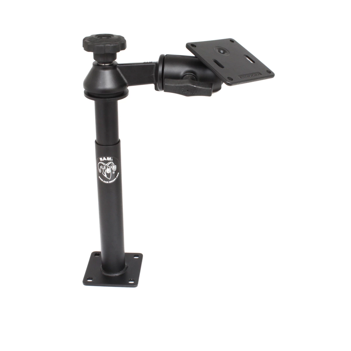The lower female Tele-Pole™ will attach to all RAM vehicles bases that do not contain a welded female Tele-Pole™. The height of the Tele-Poles™, combined, can easily be adjusted by turning the knob at the top of the post. Once the knob has been tightened, the Tele-Pole™ becomes a rigid support for connecting devices or cradles. The 3.625″ square base includes a 75mm X 75mm VESA hole pattern with 1.5″ rubber ball positioned 0.88″ from the center of one edge.