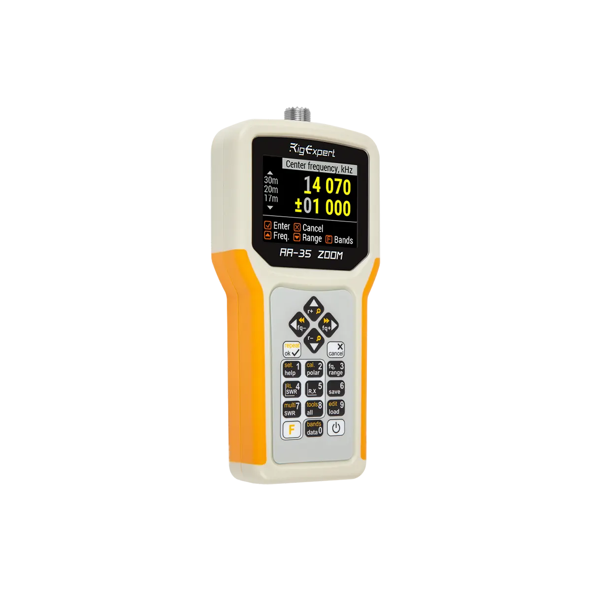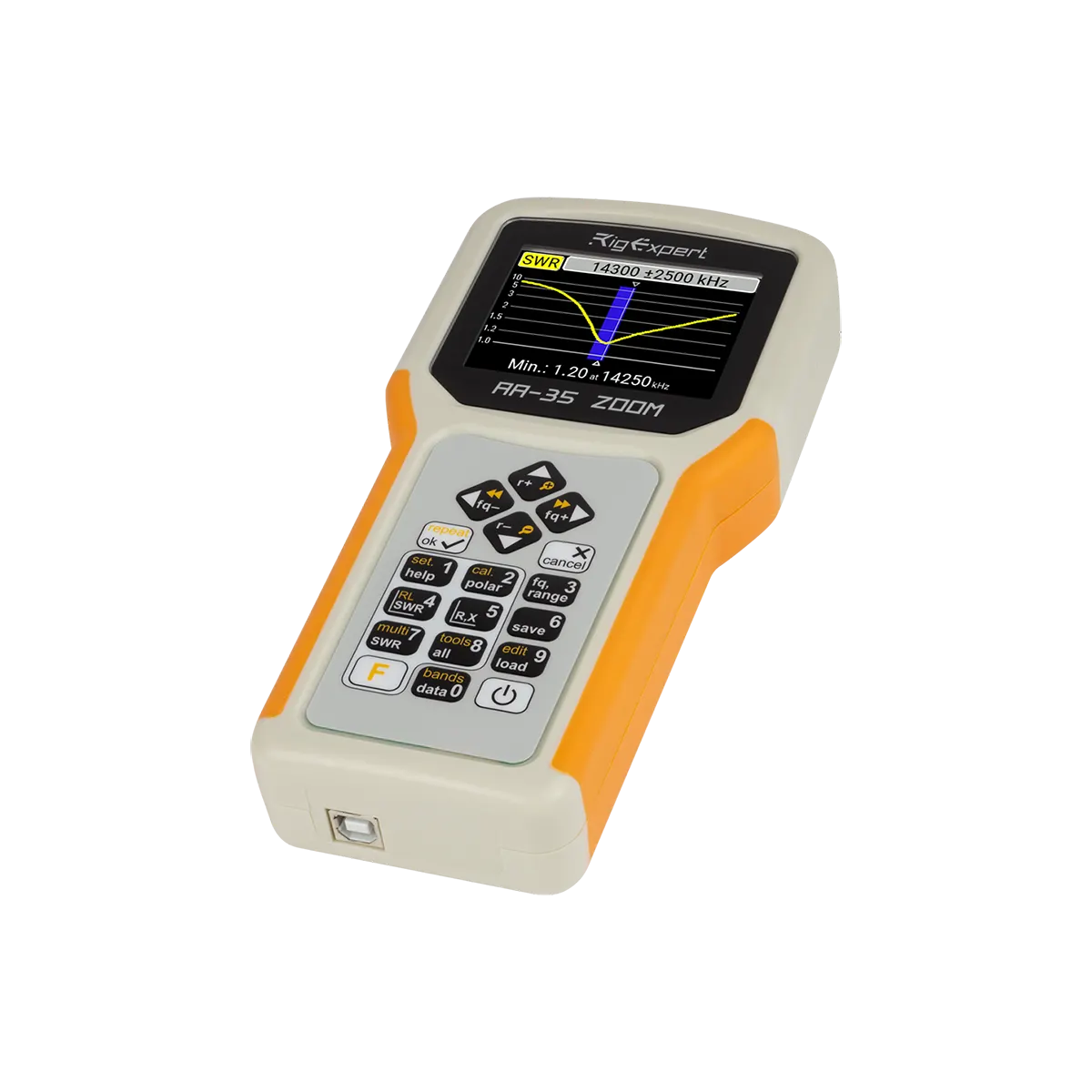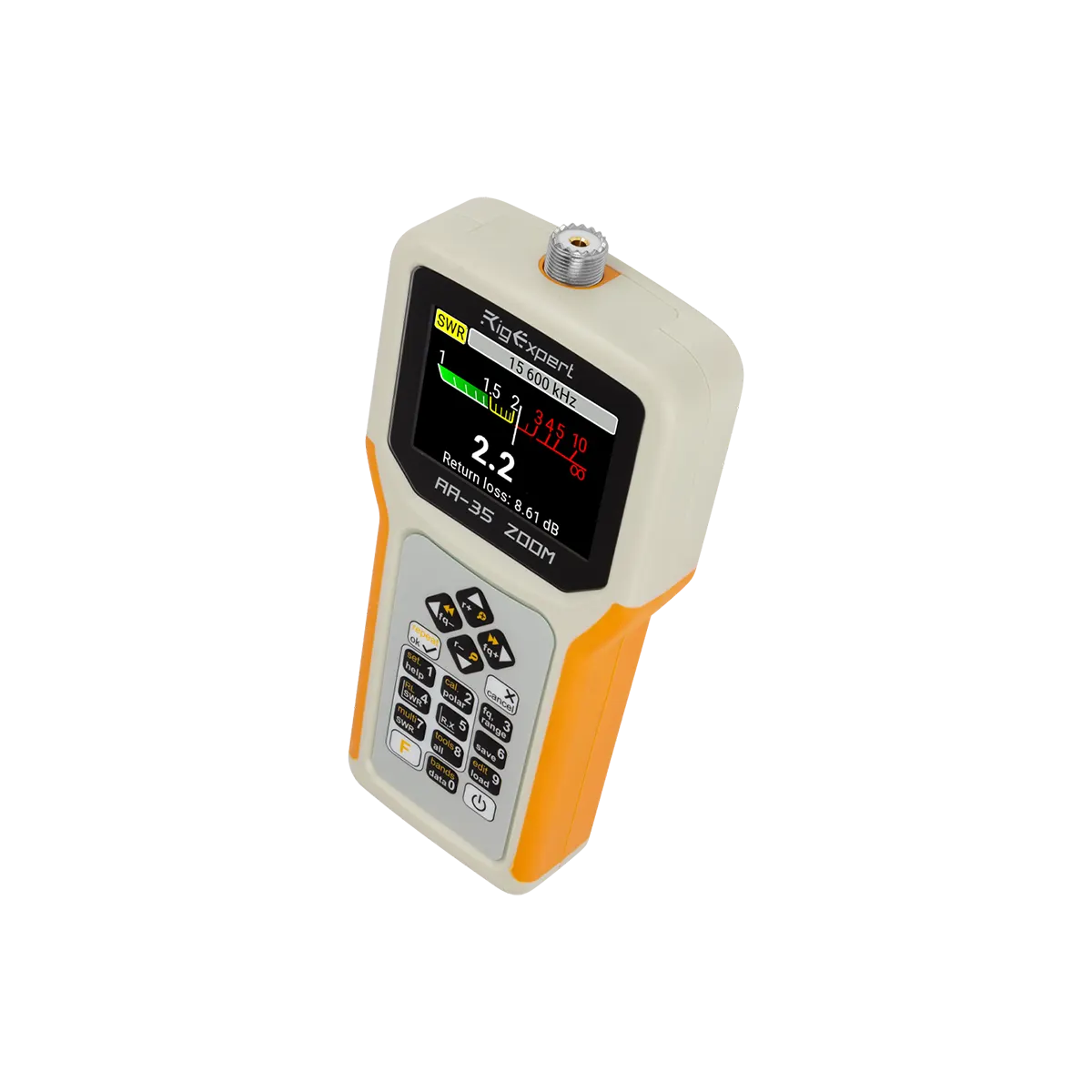 The AA-35 ZOOM is a portable, self-calibrating analyzer, designed for measuring SWR (standing wave ratio), return loss, cable loss, as well as other parameters of cable and antenna systems in the range of 60 kHz to 35 MHz.