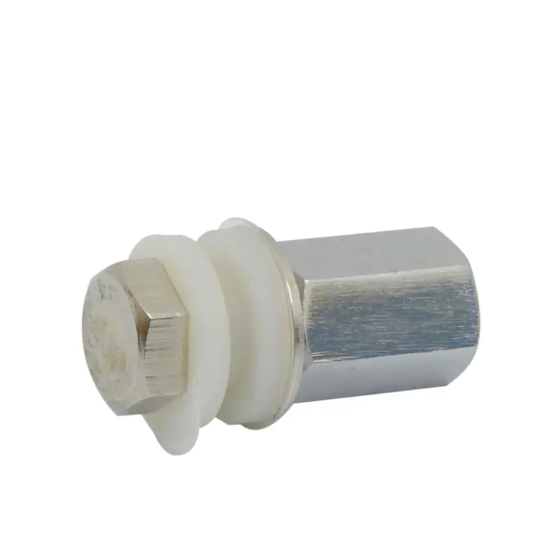 This stainless steel 3 /8 antenna stud has a chrome platted lug connector