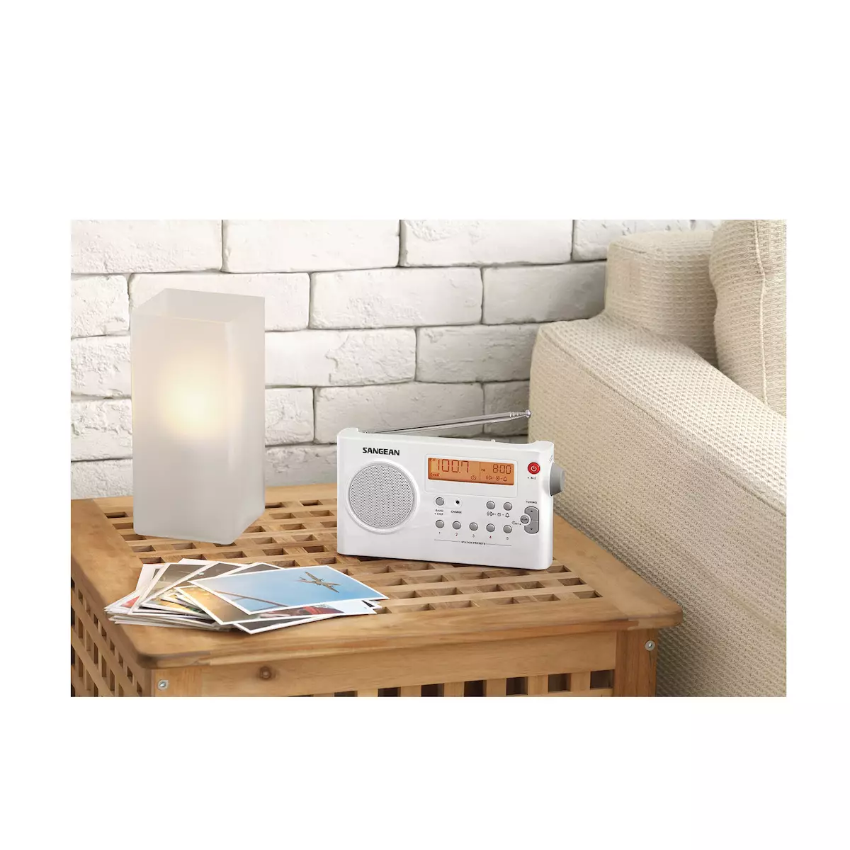 The Sangean PR-D7 is a true portable AM/FM Digital radio being ultra-compact in size (a mere 8” long and stands 4 ½” tall and weighs 1.3 lbs). All controls are conveniently located and you can see the frequency and time on the display. Tone is well balanced and excellent for both talk and music.