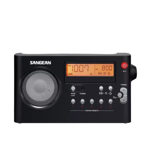 Sleep alarm allows you to wake up to music or beeper with Humane Wake Up System. You can power it with the included AC Adapter, or six “AA” size batteries (not included). In addition the PRD-7 can be powered with six rechargeable AA batteries which you can charge right in the radio. Headphone jack turns off speaker when headphones are used.