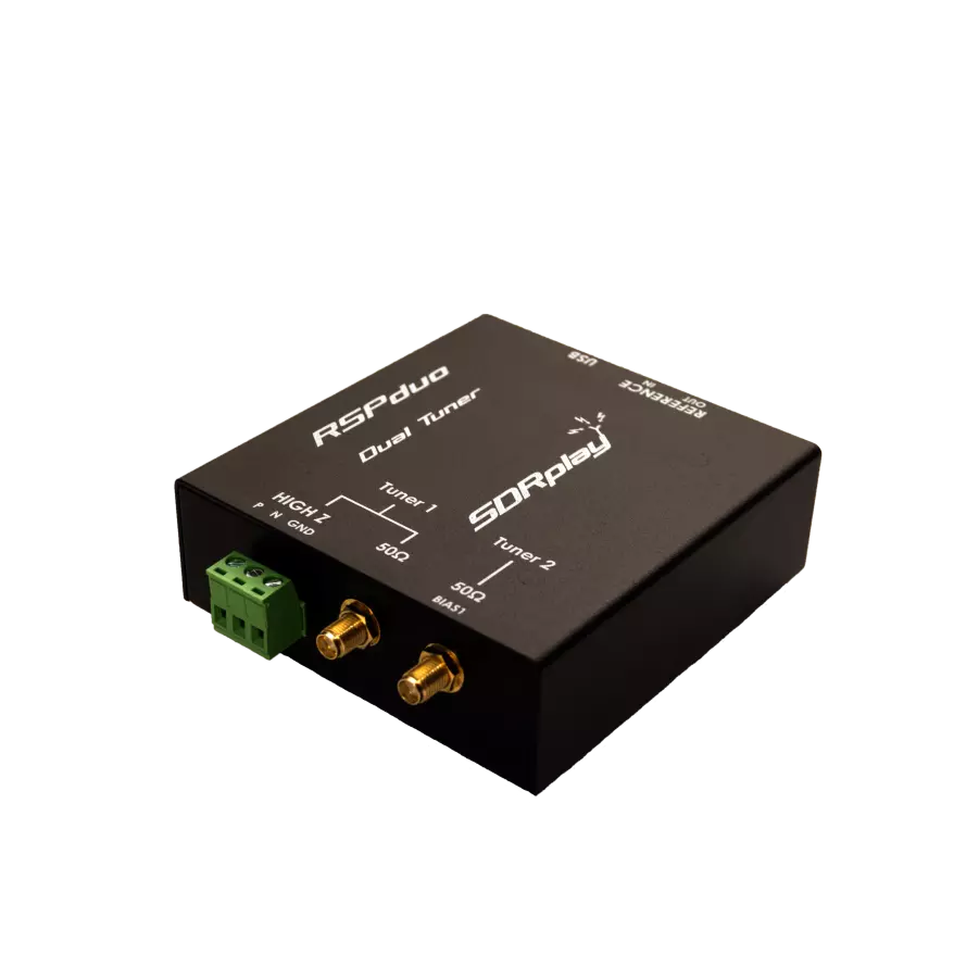 The SDRplay RSPduo is a dual-tuner wideband full featured 14-bit SDR which covers the entire RF spectrum from 1kHz to 2GHz giving 10MHz of spectrum visibility. Combined with the power of readily available SDR receiver software (including ‘SDRuno’ supplied by SDRplay) you can simultaneously monitor two completely separate 2MHz bands of spectrum anywhere between 1kHz and 2GHz. The RSPduo provides three software selectable antenna inputs, and clocking features ideally suited to industrial, scientific and educational applications. All it needs is a PC and an antenna to provide excellent communications receiver functionality. A documented API allows developers to create new demodulators or applications around the platform.