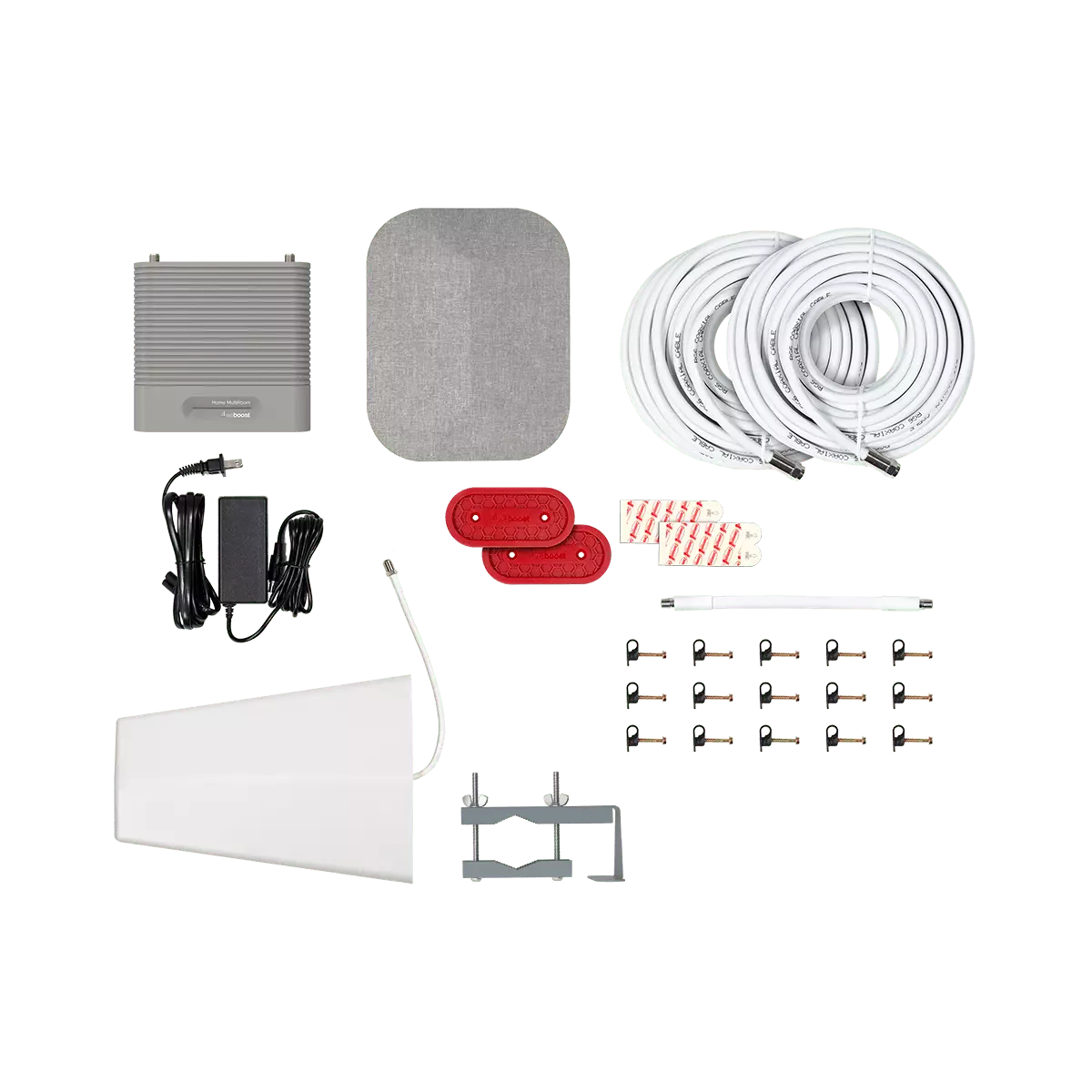 The weBoost Home Multi Room cell signal booster enhances cell coverage for up to 3 large rooms. The Stylish MultiRoom-exclusive Inside Antenna will work with any contemporary interior.